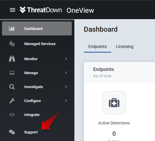 Pour faire l'ouverture d'un ticket auprès du support de Threatdown, vous devez vous rendre sur votre console Threatdown OneView.