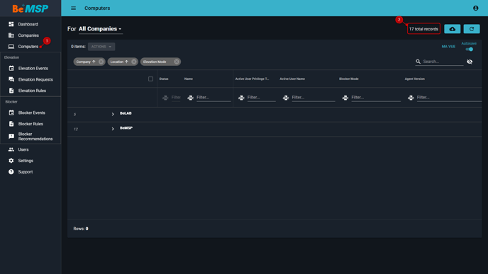 Depuis le menu Computers, en haut en droite, vous avez le nombre d'agents AutoElevate en production :