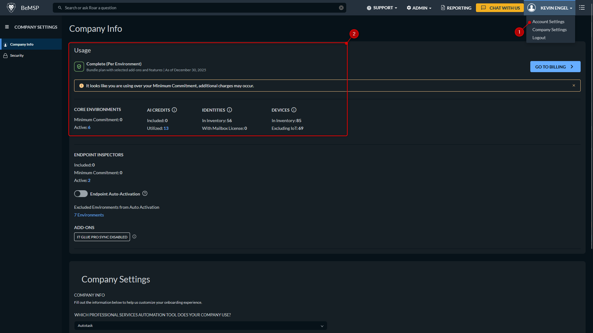 Depuis le menu Compagny Settings => Usage :