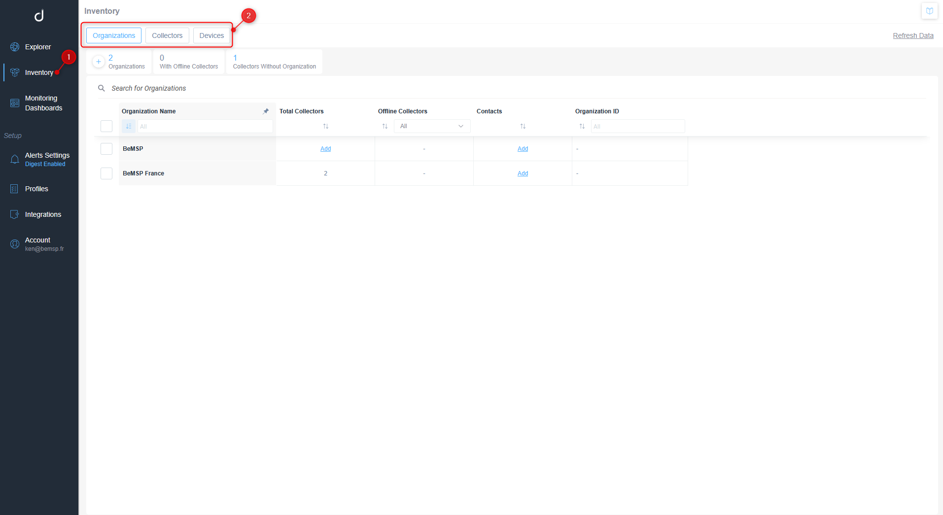 Depuis la console Web deDomotz, dans la partie Inventory :