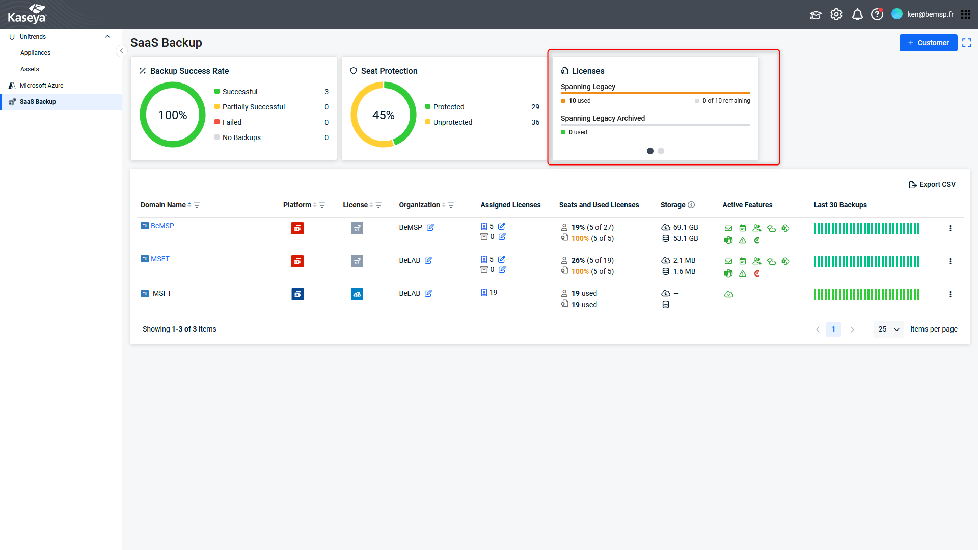 Cet article vous indique les étapes à suivre pour connaître le nombre de licences au sein de Spanning Backup