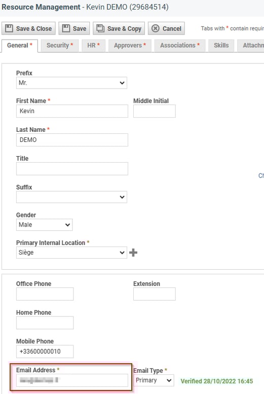 Dans le profil de la personne connectée, l'adresse email peut être changée pour valider l'accès avec la nouvelle adresse email.